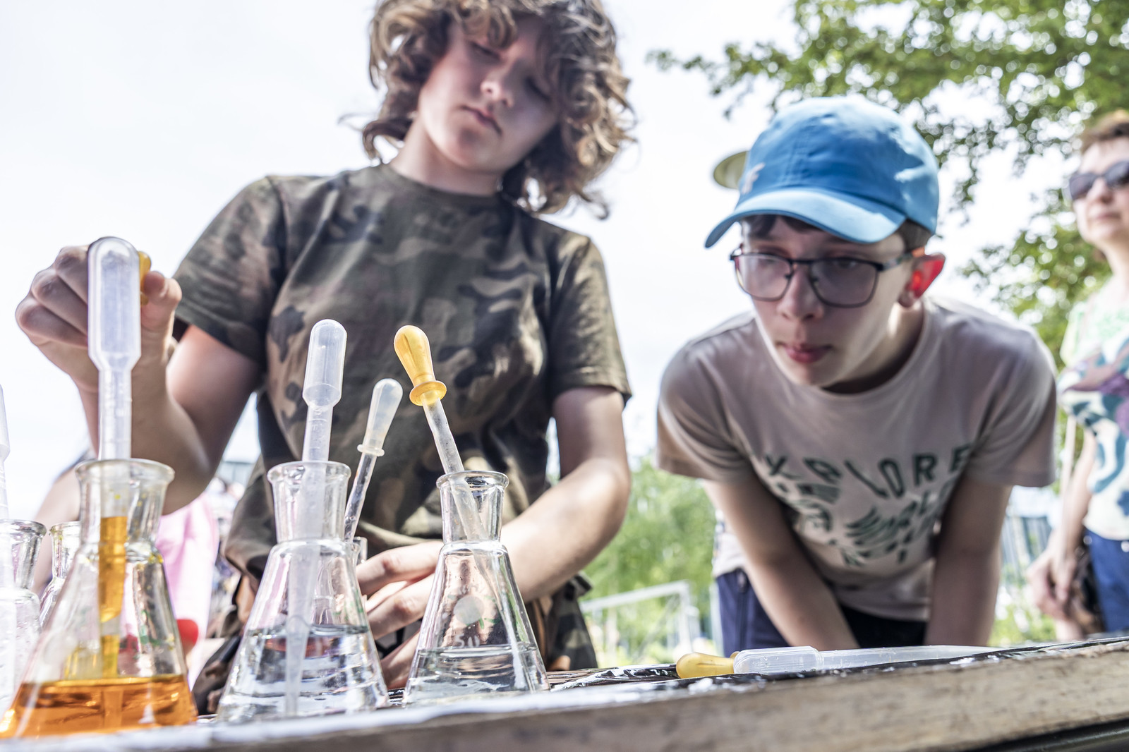 Na miłośników wybuchowych atrakcji czekali studenci Koła Naukowego „ESPRIT”, którzy przygotowali spektakularne pokazy chemiczne. Uczestnicy mogli również wysłuchać ciekawych wykładów –„Kosmiczną archeologię” opisywała Magdalena Ithilnar Stawniak, postać „Wyspiańskiego – Odkrywcy” przybliżyła Jolanta Bobala, a o „Prompt engineering, czyli jak dogadać się ze sztuczną inteligencją?” opowiedział Marcin Krawczyk. Mali i duzi odkrywcy spotkali się również z Magda „Cathia” Kozłowska zabrała małych i dużych odkrywców w podróż po galaktyce w ramach prelekcji nt. „Gwiezdnowojenna droga bohatera, czyli monomit w Gwiezdnych Wojnach”. Pokazy fizyczne Koła Naukowego FOTON („Jak fizyka wprawia świat w ruch”) oraz pokazy wysokich napięć i galeria lamp plazmowych Teslacoil jak zawsze przyciągnęły tłumy widzów. Na „Noc z gwiazdami”, czyli na finałowy pokaz pikniku zaprosili Małgosia Wilczak i Paweł Pasterz wraz z gościem specjalnym Maciejem Milczanowskim.