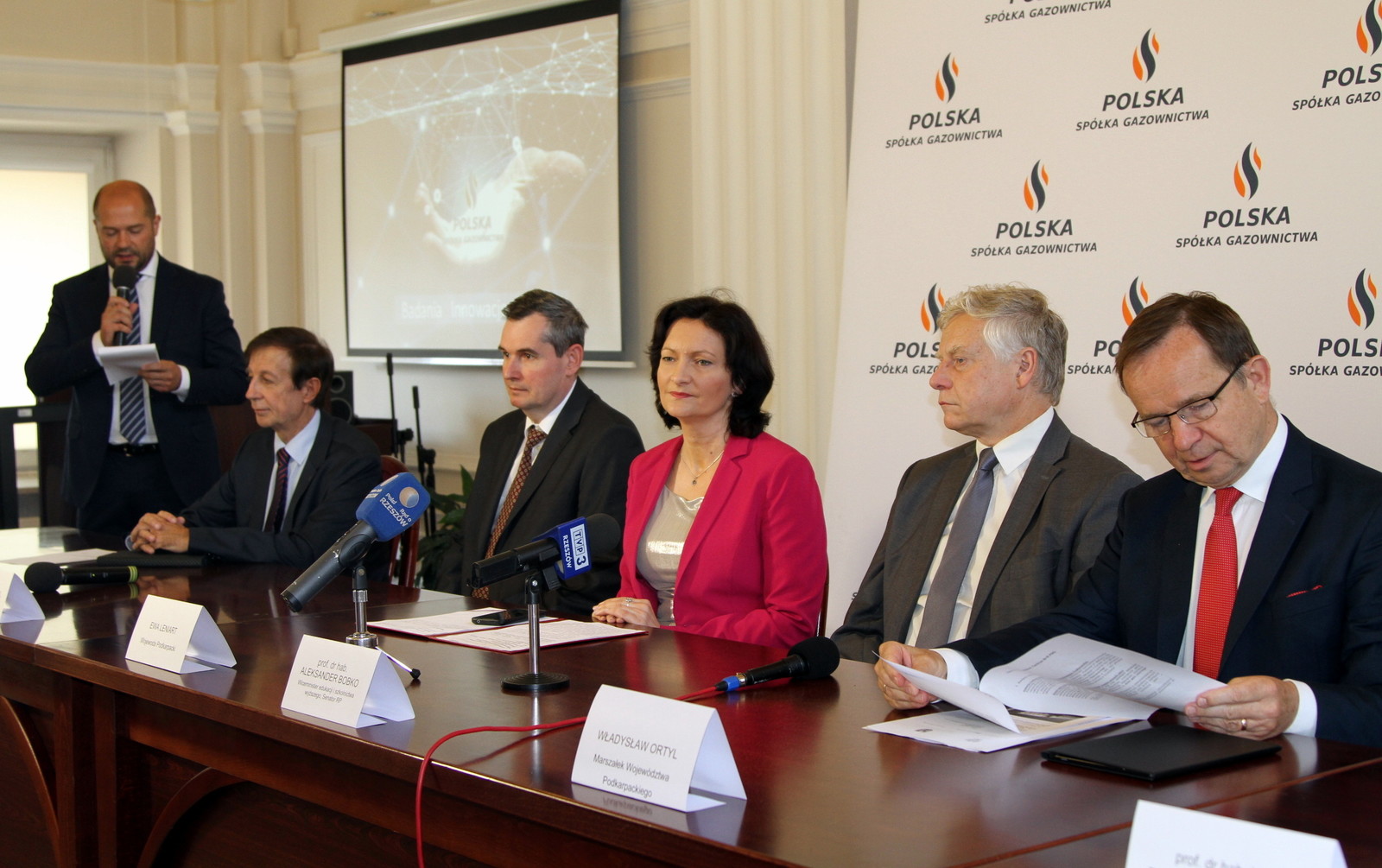 13 czerwca br. rektor PRz prof. dr hab. inż. Tadeusz Markowski i prorektor ds. rozwoju i kontaktów z gospodarką dr hab. inż. Mariusz Oleksy, prof. PRz, wzięli udział w konferencji Zarządu Polskiej Spółki Gazownictwa. Wydarzenie odbyło się w Podkarpackim Urzędzie Wojewódzkim w Rzeszowie. W spotkaniu, podczas którego omawiano projekt powołania Centrum Badań i Rozwoju, uczestniczyli: sekretarz stanu w Ministerstwie Nauki i Szkolnictwa Wyższego Aleksander Bobko, posłowie na Sejm RP Halina Szydełko i Wojciech Buczak, wojewoda podkarpacki Ewa Leniart, marszałek województwa podkarpackiego Władysław Ortyl, prezes Zarządu Polskiej Spółki Gazownictwa Jarosław Wróbel oraz prorektor ds. infrastruktury i współpracy z gospodarką dr hab. Józef Cebulski, prof. UR.