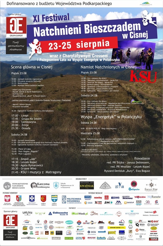 Festiwal zakończy piknik rodzinny "Natchnieni Bieszczadem" i "Pożegnanie Lata 2019" na Wyspie Energetyk w Polańczyku. Wydarzenie ma charakter charytatywny na rzecz Kamila, który w wyniku wypadku uszkodził kręgosłup. W sobotę na Wyspie „Energetyk” odbędzie się III Cross PGE EO – bieg charytatywny, którego ambasadorką jest Izabela Zatorska – biegaczka górska.
